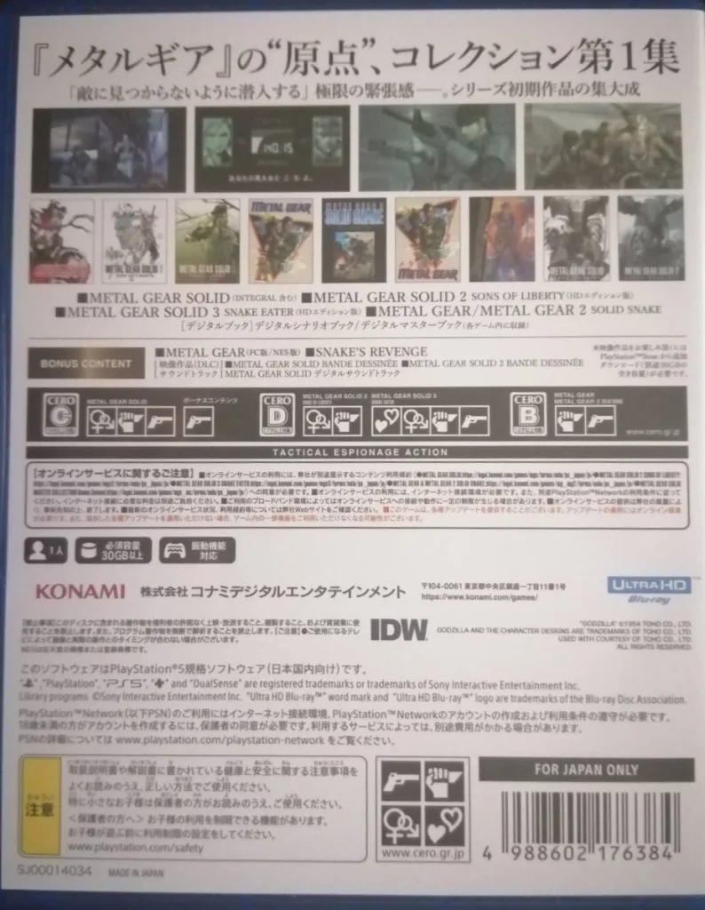 | タイトル | METAL GEAR SOLID: MASTER COLLECTION Vol.1 / メタルギアソリッド |